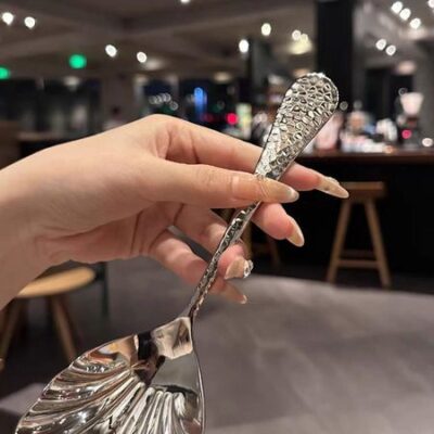 Ложка из нержавеющей стали в форме ракушки с длинной ручкой, половник, ресторанная десертная ложка, ложки для мороженого, кухонные принадлежности, инструмент