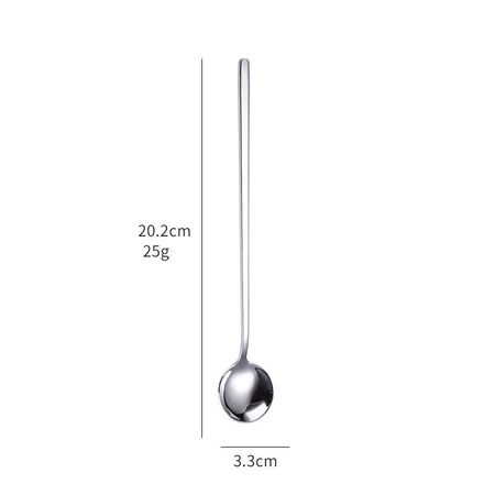 Ложка из пищевой нержавеющей стали 304 с длинной ручкой для мороженого, чая, кофе, круглые ложки для размешивания, столовые приборы, кухонные принадлежности для бара 01