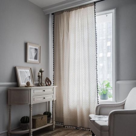 Маленькая занавеска Daisy из хлопка и льна с кисточками, затемняющая штора для эркера, плоская штора для американского маленького окна, кухонная занавеска с полузатенением, крючки 150x160cmGrommets Top