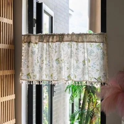 Маленькие шторы без пробивания, Растения для торговли между Японией и Кореей, Цветы, Свежие зеленые листья, Короткие шторы, Готовые изделия, Шторы-перегородки Height 45 * Width 132cm