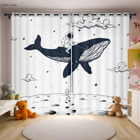 Мечтательные шторы с мультяшным принтом Вселенной астронавта, детские оконные шторы, легко стирать и ухаживать, украшение для дома, 2 шт. W50xH140(CM)x2PCSGrommet Top