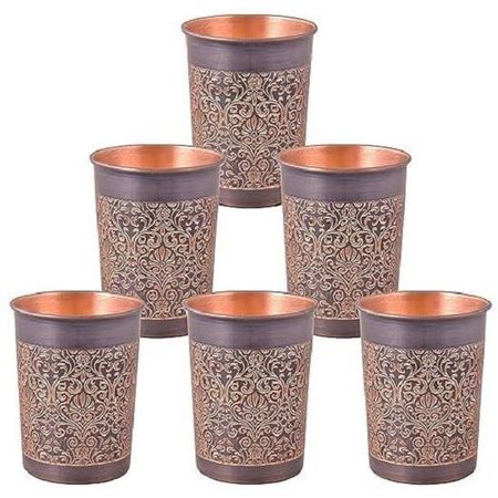 Медный стакан для воды премиум-класса с резьбой и черной глянцевой отделкой под старину, специально созданный для обеденной кухни и многого другого, набор из 6, 250 мл медный