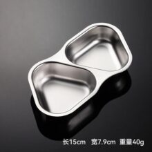 2 Grid Stainless Steel Sauce Dish Divided Seasoning Plate Hot Pot Dipping Bowl Vinegar Soy Spice Condiment Trays for Kitchen