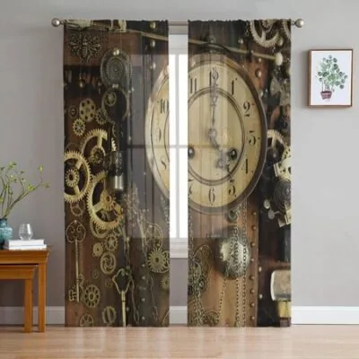 Механические часы с часовым механизмом Указатель времени Прозрачные шторы Тюль для окон в гостиной Шторы для спальни Вуалетные шторы Роскошные шторы W135 x H114cm