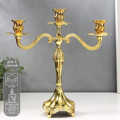 Изящный подсвечник на три свечи привнесет в интерьер вашего дома манящую атмосферу романтики и неповторимое веяние старины – каменных особняков, увитых плющом, мягких бархатных портьер и подрагивающих огоньков свечей, рождающих на стенах причудливые зыбкие тени. Простой и элегантный Металлический подсвечник на 3 свечи «Канделябр Богемия», 32×32×11 см украсит собой гостиную, спальню, библиотеку и позволит вам получать еще больше удовольствия от уютных домашних вечеров.