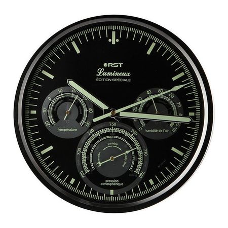 RST 77741 это элегантные современные настенные часы с люминесцентным покрытием циферблата и стрелок, оборудованные функционалом настоящей домашней метеостанции с часами. Строгий дизайн данного изделия отлично подойдет к любому интерьеру и позволить метеостанции послужить не только полезным высокотехнологичным бытовым агрегатом, но и стильным украшением.
