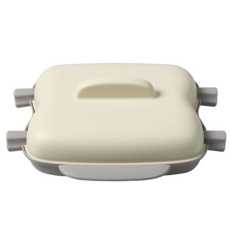 Микроволновая пароварка для кукурузы с ручкой. Пищевая термостойкость. Можно мыть в микроволновой печи. Можно мыть в посудомоечной машине. Коробка с 2 початками кукурузы, приготовленная на пару. бежевый