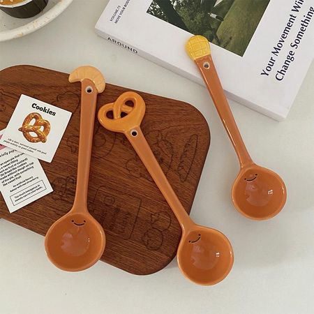 Милая керамическая ложка для супа для торта Kawaii корейская расписанная вручную десертная ложка для мороженого с длинной ручкой кухонные принадлежности для стола