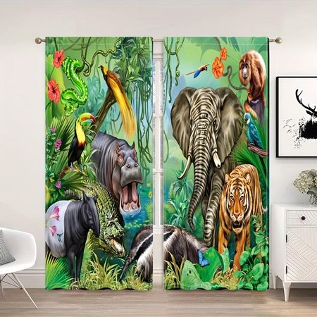 Милые мультяшные шторы с животными, занавески с принтом кота, оленя, слона, льва и кролика для мальчиков и девочек, оконные жалюзи для спальни, cortinas (50Wx50H)x2(CM)&Rod Pocket
