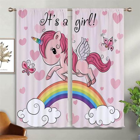 Милые розовые занавески с рисунком единорога и радуги, для украшения комнаты мальчиков и девочек, легко стирать и ухаживать, 2 шт. W50xH130(CM)x2PCSRod pocket