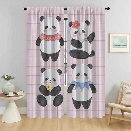 Милые шторы в виде панды для детской комнаты, украшение на Хэллоуин, занавески для гостиной, домашний интерьер, шторы для камеры, перегородки W50xH70cmx2pcs