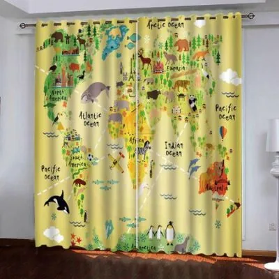 Милые животные фрукты детская комната оконные шторы темная гостиная детские шторы для раннего образования детские занавески домашний декор 100W160H(CM)40x63inGrommet Top