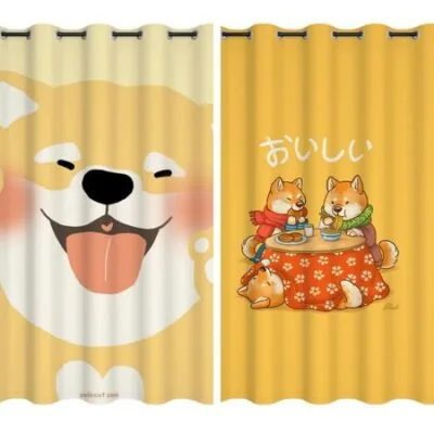 Милый мультфильм Шиба-ину, эркерные шторы от пола до потолка для детской спальни, высокие затемняющие шторы, крючок для пробивки W55 X H120cm X 2Grommet Top
