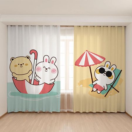 Милый мультяшный кролик Детская комната Высокая затемняющая штора спальня детский сад учебный класс центр раннего образования затемняющая штора W55 X H120cm X 2Grommet Top