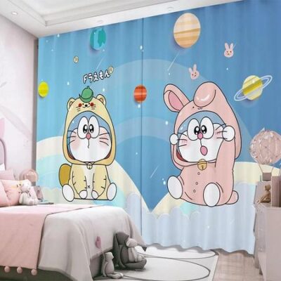 Милый мультяшный кролик, занавеска с высокой степенью затемнения, занавеска с цветами для девочек, общежития, детской комнаты, спальни, изоляция, плотная затемняющая штора W55 X H120cm X 2Grommet Top