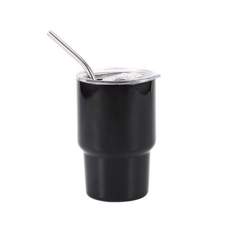 Мини-стакан на 2 унции с соломенной крышкой, стаканы для сублимации из нержавеющей стали, чашки с двойными стенками и вакуумной изоляцией для коктейлей, соков, кофе чёрный