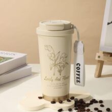 Термос из нержавеющей стали 500 мл Двустенный вакуумный тамблер из нержавеющей стали С цветочным принтом Кружка для кофе Непроливающийся дорожный стакан 500ml белый