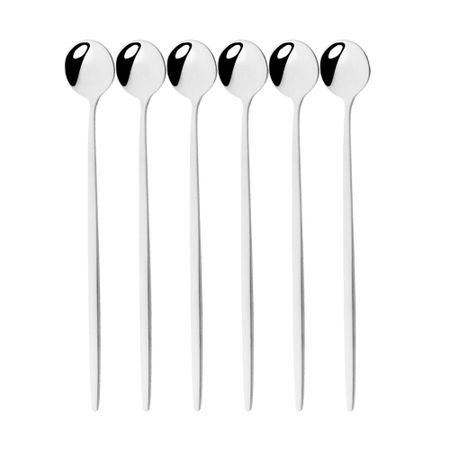 MIT 6 шт. черно-золотистые столовые приборы с длинной ручкой из нержавеющей стали, полированная ложка для помешивания напитков, мороженого, десерта, чая, набор столовых приборов серебряный