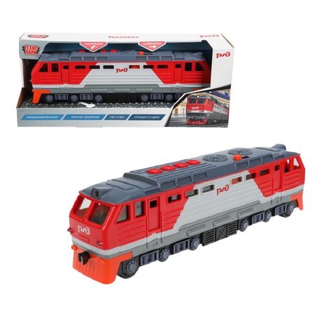 Настоящий железнодорожный гигант у вас дома! Инерционный тепловоз с подсветкой и звуком — реалистичная модель железнодорожного транспорта для детей от 3 лет. 30-сантиметровая копия с инерционным механизмом.Эффекты настоящего тепловоза: световые огни и звуковые сигналы включаются кнопками — 4 разные функции управления.Инерционный механизм: достаточно немного откатить назад и отпустить — тепловоз поедет сам, как настоящий.Детализированный дизайн: реальные объявления, открывающиеся двери, элементы кабины машиниста, характерные формы корпуса.Развивает фантазию — ребёнок придумывает железнодорожные приключения. Учит основам механики через игру.