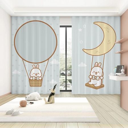 Модные мультяшные милые шторы с высокой затемняющей шторой, розовые зайчики для девочек, принцессы, для спальни, гостиной, занавески для окон, 2 шт. W55 X H120cm X 2Grommet Top