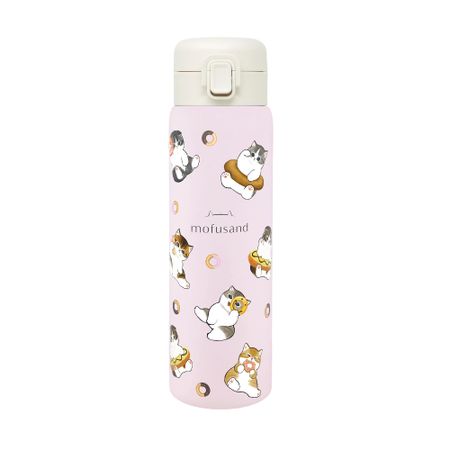 mofusand Double Vacuum Insulating Stainless Steel One Push Bottle 480ml With One Touch Lock Easy to Use with One Hand Water Bottle Thermal/Cold [Donut бледно-розовый