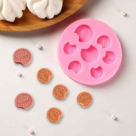 Молд «Бисквиты», силикон, d=8 см, цвет розовый