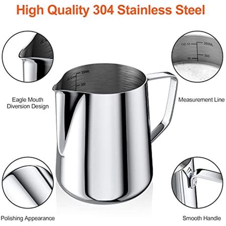 Молочник 350 мл 304 для молока, пены, молока, с отметкой размера 12 унций, кофейный набор для капучино, эспрессо, латте-арта, идеально подходит для любителей кофе 7x1x25cm
