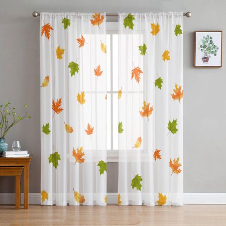 Молодежная спальня Прозрачные шторы Кленовый лист Падающий желтый Кухня Кабинет Подвесные шторы Гостиная Праздничный декор Тюль Шторы 135W x 114H(cm)