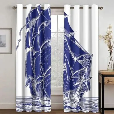 Морские волны Летающие птицы Японский стиль Высокая степень затенения Шторы для гостиной Спальни Плотная Блэкаут Драпировка для кухни Драпировки W55 X H120cm X 2Grommet Top