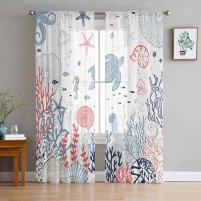 Морской коралловый в летний черепаховый прозрачный занавес для гостиной Современный домашний декор Тюль занавеска для спальни Вуаль шторы W135 x H274cm