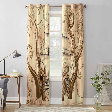 Морской осьминог Ретро оконные шторы для гостиной, спальни, современные кухонные жалюзи, шторы, шторы 135W x 60H(cm) x1
