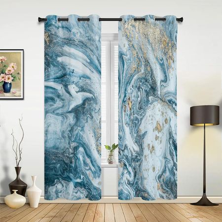 Мраморный синий и золотой абстрактный современный занавес для гостиной спальни шторы с высоким затемнением кухни плотные затемняющие шторы W55 X H120cm X 2Grommet Top