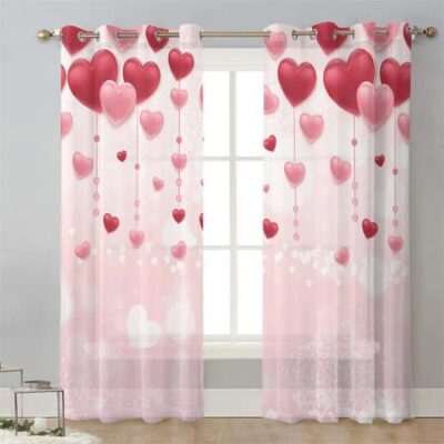Мультфильм С Днем Святого Валентина Красный Сердце Цветок Тюль Прозрачная Вуаль Оконные Шторы Жалюзи для Гостиной Спальни Домашний Декор2 Шт. W65X60H(cm)X2PcsGrommet Top