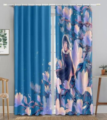 Мультяшная девушка розовая роза тюльпан белая лилия цветы занавеска детская спальня 2 панели высокая затененность мода различные цветовые узоры W55 X H120cm X 2Grommet Top