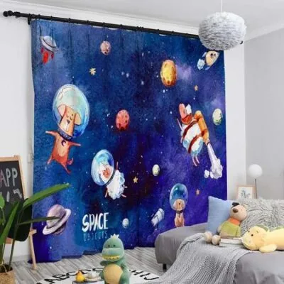 Мультяшная штора с высокой степенью затемнения для детской комнаты, спальни мальчика, астронавта, нового эркера, солнцезащитного экрана, затемнения, звукоизоляционной шторы 2 шт. W55 X H120cm X 2Grommet Top