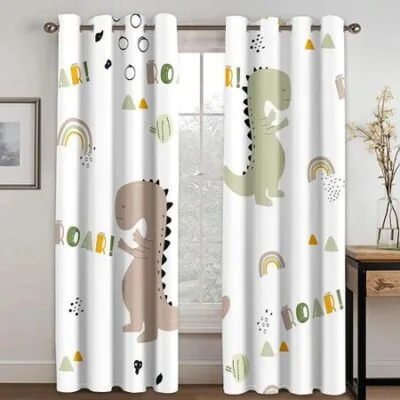 Мультяшные мальчики, милые шторы с динозаврами, красочные шторы с изображением дикой природы в стиле сафари, забавные шторы с изображением динозавров для детей, спальни, гостиной W60H60(CM)x2pcsRod Pocket