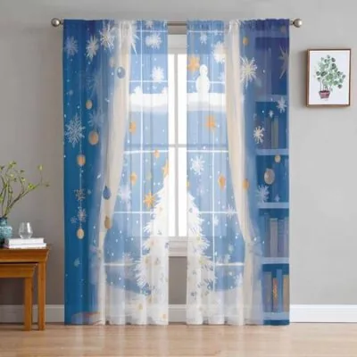 Мультяшные рождественские елки, растения, книги, прозрачные шторы, современные газовые шторы для гостиной, спальни, вуаль, пряжа, шторы W135 x H114cm