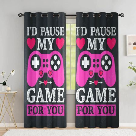 Мультяшный геймпад, высокие затемняющие шторы для спальни, граффити, слова, видеоигры, оконные шторы, игровые плееры, декор гостиной W55 X H120cm X 2Grommet Top