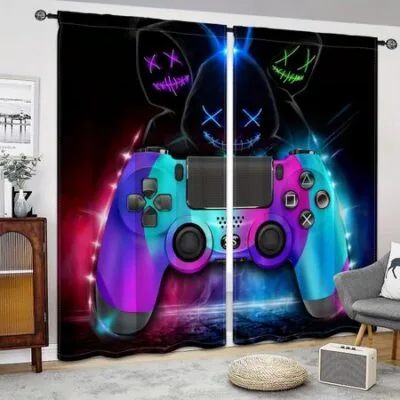 Мультяшный игровой контроллер, переключатель, оконные шторы, жалюзи для гостиной, детской спальни, ванной комнаты, кухни, офиса, двери, домашнего декора, 2 шт. W65X60H(cm)X2PcsGrommet Top