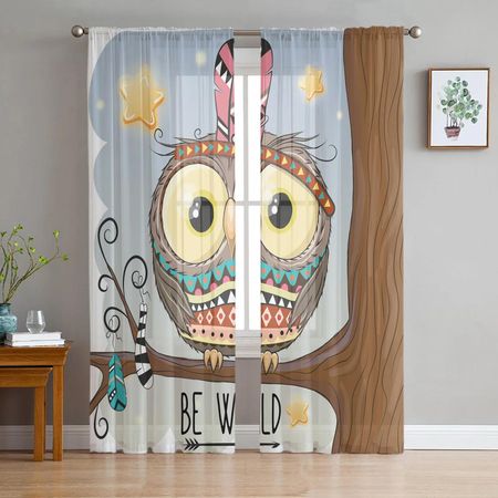 Мультяшный малыш, милая сова, тюль, прозрачные шторы для гостиной, украшение для окна, занавеска для спальни, кухни, вуаль, органза, шторы W135 x H115cm x1Grommet Top