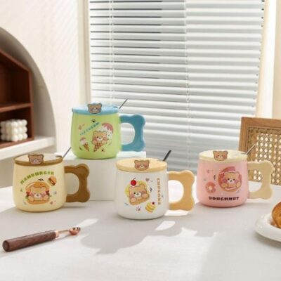 Главная » Все для дома Мультяшный милый медведь керамическая чашка для питья кружка большой емкости с крышкой ложка для домашнего офиса чашка для молока кофе 440ml зелёный Просмотров 1 Darling Women Boutique