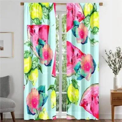 Мультяшный стиль Лето Фрукты Розовый Оранжевый Желтый Персиковый Клубника Шторы Спальня Гостиная Шторы Высокое затемнение Новый узор 2 шт. W55 X H120cm X 2Grommet Top