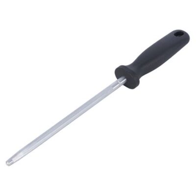 Мусат для ножей Werner Como 52609, общая длина 32 см, длина основания 20 см.Изготовлен из углеродистой стали.Идеальный помощник для поддержания остроты ножей.Ручка удобной формы изготовлена из пластика.Мусат используется для слегка затупившихся ножей. Не подходит для ножей с серрейторной и волнообразной заточкой, а также для японских ножей.Разместите мусат рукоятью вверх на разделочной доске и перемещайте нож вдоль него сверху вниз.Рекомендации по использованию и уходу:Протирайте мусат сразу после использования чистой салфеткой.Мойте в теплой воде мягкими моющими средствами.Не используйте для мытья стальные губки или щетки, чтобы не поцарапать мусат.