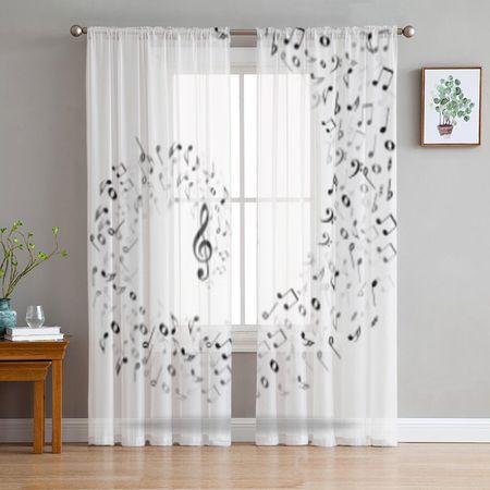 Музыкальные ноты, черно-белые прозрачные занавески для гостиной, спальни, вуаль, шторы для окон, занавески из органзы, вечерние тюлевые шторы 135W x 114H(cm)