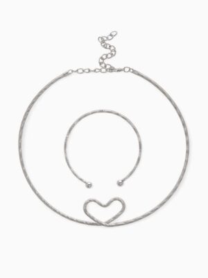 Набор из двух элегантных украшений — чокера и браслета — выполнен в благородном серебристом оттенке, который гармонично впишется в любой образ. Минималистичный дизайн с акцентом на форму сердца без дополнительных вставок подчёркивает современную утончённость и универсальность аксессуаров.Металлическая фурнитура серебряного цвета отличается прочностью и устойчивостью к износу, обеспечивая долговечность изделия и комфорт при ежедневном использовании. Чокер оснащён регулируемой застёжкой, что позволяет легко подобрать идеальную длину и чувствовать себя уверенно в любой ситуации.Состав набора: чокер и браслет — стильное сочетание для создания завершённого образа.Цвет и материал: серебристая фурнитура без вставок, устойчивая к потускнению и механическим повреждениям.Продуманный дизайн: лаконичное сердце — символ любви и гармонии, который станет акцентом вашего стиля.Регулируемая длина: удобная застёжка чокера позволяет адаптировать украшение под индивидуальные параметры.Идеальный подарок: комплект подчеркнёт внимание к деталям и станет прекрасным презентом для близкого человека.Выбирая этот набор, вы получаете аксессуары, которые легко сочетаются с разными стилями и придают образу изысканность и легкость. Они подчеркнут вашу индивидуальность и подарят ощущение комфорта в течение всего дня.