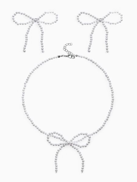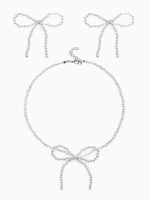 Набор 2 предмета: серьги, колье «Жемчуг» бантик, белый в серебре, 35 см