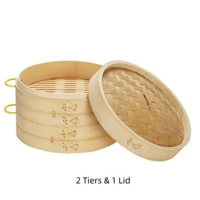 Набор бамбуковых пароварок 2-ярусная бамбуковая пароварка с крышкой и боковыми ручками для дим-самов, пельменей, булочек, морепродуктов, риса 28 см