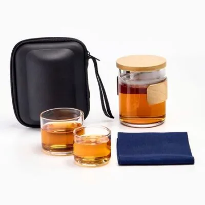 Набор для чайной церемонии 4 предмета, на 2 персоны — идеальный подарок для ценителей изысканного вкуса и традиций. Включает в себя все необходимое для проведения традиционной церемонии, которая позволит вам насладиться чаем, а также погрузиться в атмосферу спокойствия и релаксации. В набор входят 4 предмета, которые помогут вам создать уютную обстановку и провести чайную церемонию на высшем уровне: Заварочный чайник — это емкость, в которой заваривается чай. В нем чай настаивается и приобретает свой вкус и аромат. Крышка заварника служит ситом, которое предотвращает попадание чаинок в пиалу. 2 пиалы — это сосуды, из которых пьют чай, предназначены для каждого участника церемонии. Они имеют удобную форму и размер, чтобы комфортно наслаждаться напитком. Тканевая салфетка — это важный аксессуар, который используется для ухода за предметами из чайного набора. Она изготовлена из материала, который хорошо впитывает воду и не оставляет ворсинок на поверхности. Все предметы подарочного набора упакованы в компактную сумку-чехол, которая обеспечивает удобство хранения и транспортировки. Сумка изготовлена из прочного материала, который защищает набор от повреждений и загрязнений. Имеет удобный подвес и застежку-молнию. Чайный наборй позволяет заваривать различные сорта чая, в зависимости от предпочтений участников церемонии. Это могут быть как классические зеленые и черные чаи, так и более экзотические варианты, например, белый чай, улун, пуэр или связанные чаи. Набор для чайной церемонии поможет создать атмосферу уюта и гармонии, а также насладиться вкусом и ароматом настоящего чая. Набор также может использоваться для обучения искусству чаепития. Чайный набор складывается в удобную сумку для хранения, что позволяет брать его в путешествие и наслаждаться ароматами чая в любом удобном и комфортном для вас месте. В горах или на пикнике, с коллегами или дома среди близких людей, чайный набор будет прекрасным выбором для распития любимого чая. Этот чайный сервиз идеально подойдет и для тех, кто хочет насладиться традиционным чаепитием. Добавьте особой атмосферы в Ваш чайный ритуал!Набор для чайной церемонии станет отличным подарком для мамы, папы, брата, бабушки на День Рождения, Новый год или любой другой подходящий праздник. Также подойдёт в качестве презента коллегам и друзьям.