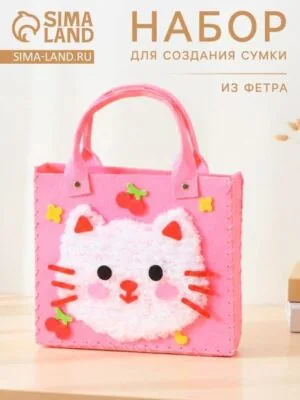 Набор для создания сумки из фетра «Кошечка», цвет розовый