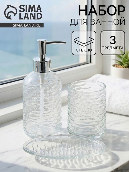 Набор для ванной «Перелив», 3 предмета, дозатор для мыла, стакан, мыльница